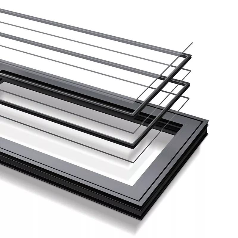 Максимална конфигурација је три слоја шупљег стакла која је испуњена инертним гасом, ефективно смањујући пренос топлоте и буке кроз стакло и постизање високе топлотне изолације и високе звучне изолационе ефекте.